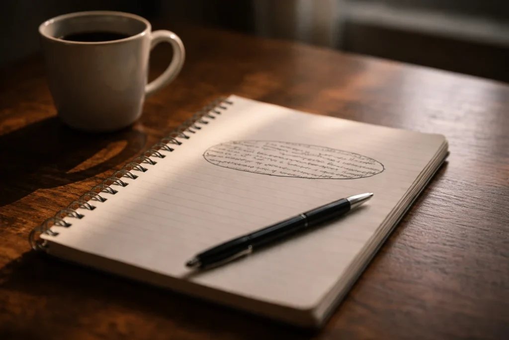 احتفظ بدفتر ملاحظات، حتى لو ملأته بجمل ناقصة وأفكار غير مكتملة. الأفكار التي تبدو صغيرة اليوم تصبح أحيانًا نواة مشاريع كبيرة لاحقًا.