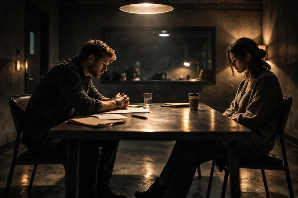 فكر في شخصية تجلس في غرفة تحقيق. التحقيق الجيد في السينما لا يسير كالتالي: محقق يسأل، مشتبه به يجيب، محقق يسأل مجدداً. هذا ممل. التحقيق الجيد هو معركة إرادات. المحقق يحاول كسر الآخر، والمشتبه به يحاول الإفلات، أو تضليل المحقق، أو ربما إخباره بالحقيقة بطريقة يصعب تصديقها. كل جملة هي تحرك في لعبة. هذا ما يجعل مشاهد التحقيق ممتعة حتى حين لا يحدث فيها شيء حركي.